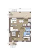 В доме предусмотрено три спальни, что обеспечивает комфортное размещение нескольких человек. Наличие одной ванной комнаты добавляет удобства в повседневную жизнь. Этот проект идеально подходит для создания уютного семейного гнёздышка.
